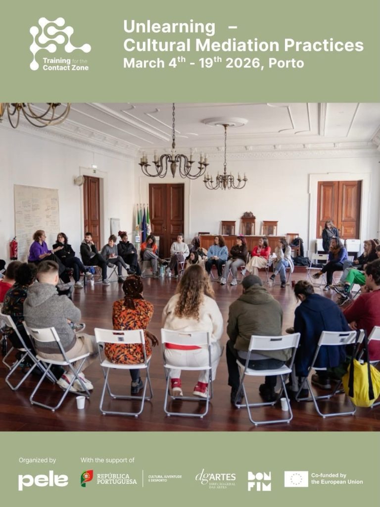 Uma iniciativa que integra o projeto Training for the Contact Zone, financiado pela União Europeia. A PELE é uma estrutura apoiada pela Direção-Geral das Artes. Esta formação contou ainda com o apoio da Junta de Freguesia do Bonfim.